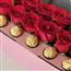 描述: 红玫瑰、费列罗巧克力组成、长型礼盒装。